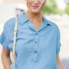 Once you slip into this cozy sweater you are going to want it to stick around for a while! It’s so cute and we are loving the metallic detailing! This fuzzy sweater is going to look so fun and festive this holiday season! Wide neckline Long batwing sleeves Knit fabric with metallic eyelash threading Generous stretch Cindy is wearing the small.