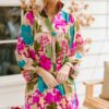 Girl, you better get ready for this blouse! It’s perfection! That floral print and those colors are stunning! The puff sleeves are super cute too! This blouse will look great with trousers for work or with jeans for casual events! V-neckline with tied detail Short puff sleeves Ruffled detailing Bold floral print No stretch Baileigh is wearing the small.