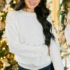 We know you well and we know that you are going to adore this sweater! It’s just so cozy and classic! That knit fabric is so warm and we are loving the bubble sleeve details! Round neckline 3/4 bubble sleeves Heather knit fabric Generous stretch Morgan is wearing the x-large.