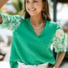 This blouse is the definition of cute and classic! The solid coloring and the simplistic detailing make it super easy to style in a new way every time you wear it! Plus, we love a blouse that can go from season to season! Round neckline with braded detail Button keyhole back Short flutter sleeves No stretch Baileigh is wearing the small.
