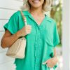 Just imagine it… you’re walking out of a chic resort, headed towards a fancy poolside dinner and you’re wearing this bold beauty! It’s flowing freely in the breeze as you walk. Yeah, this dress is perfect for that!! V-neckline Long bubble sleeves Smocked waist Cold abstract print No stretch Savannah is wearing the small.